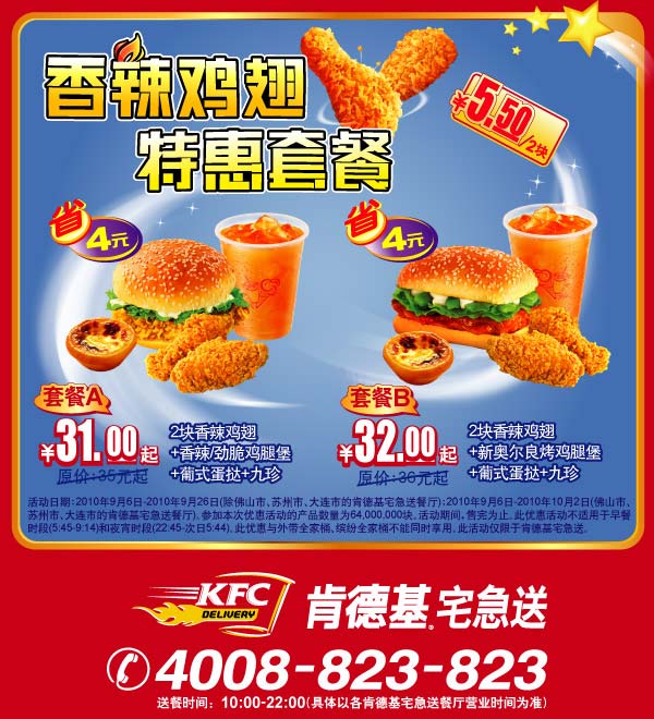 以上优惠仅限于肯德基宅急送。