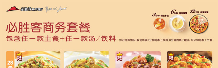 如无特殊情况,必胜客将在3分钟内奉上饮料,6分钟内奉上暖汤,12分钟内奉上主食。