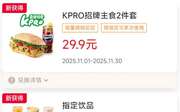 肯德基2025年11月优惠券指定买一送一,早餐10.9元起,招牌主食19.9元起有效期:2025年11月30日